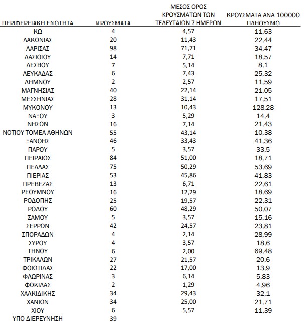 Τέλος, 39 κρούσματα βρίσκονται υπό διερεύνηση.