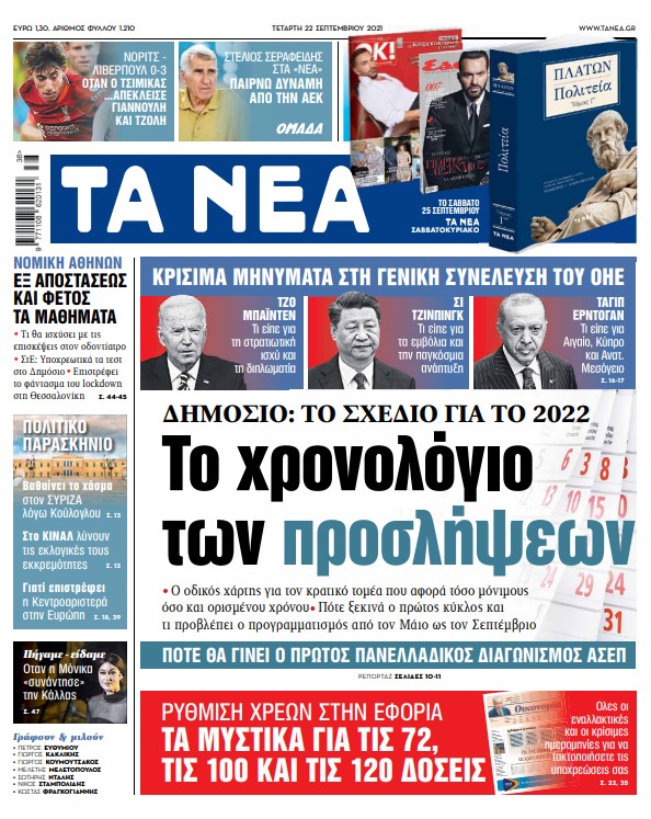 Διαβάστε στα «Νέα» της Τετάρτης: Δημόσιο: Το σχέδιο για το 2022