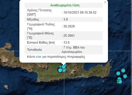 Σεισμός 3,8 Ρίχτερ σημειώθηκε λίγο μετά τις 12 το μεσημέρι στη Κρήτη με επίκεντρο το Αρκαλοχώρι.