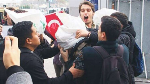 Την ίδια ώρα, μέλη της αυτοπροσδιοριζόμενης ως αριστερής εθνικιστικής οργάνωσης «Ένωση Νεολαίας Τουρκίας» (TGB) διαδήλωναν στην παραλία της περιοχής Ζεϊτινμπουρνού, διαμαρτυρόμενα για την παρουσία του πλοίου στην Τουρκία. Κάποια στιγμή, όταν εντόπισαν ορισμένα μέλη του πληρώματος, στράφηκαν με επιθετικές διαθέσεις ενατίον τους και τους προπηλάκισαν.