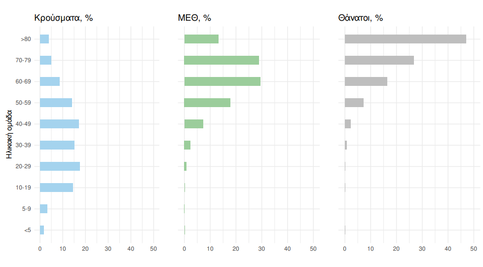 Η διάμεση ηλικία των κρουσμάτων είναι 38 έτη (εύρος 0.2 έως 106 έτη), ενώ η διάμεση ηλικία των θανόντων είναι 78 έτη (εύρος 0.2 έως 106 έτη).