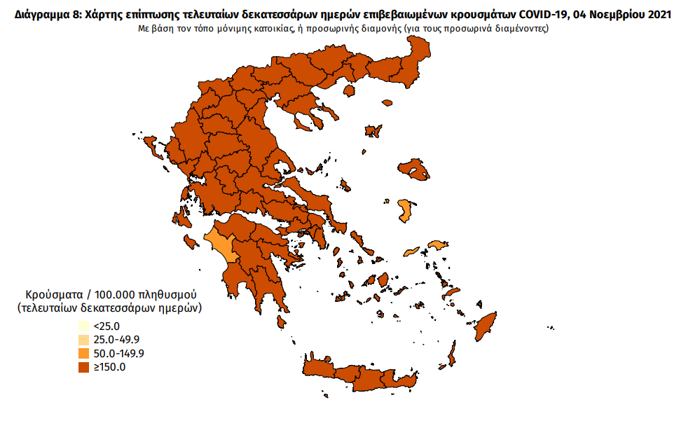 Με βάση τα επιβεβαιωμένα κρούσματα των τελευταίων 7 ημερών, 148 θεωρούνται σχετιζόμενα με ταξίδι από το εξωτερικό και 2.589 είναι σχετιζόμενα με ήδη γνωστό κρούσμα.
