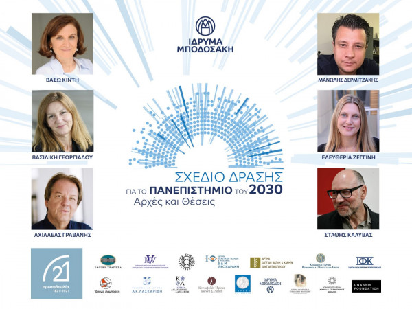 Το Ίδρυμα Μποδοσάκη ανέλαβε την κατάρτιση τεσσάρων ολοκληρωμένων Σχεδίων Δράσης, για το Πανεπιστήμιο του 2030, την αναβάθμιση της Δημόσιας Υγείας, την αντιμετώπιση βασικών Περιβαλλοντικών Προκλήσεων και την ενδυνάμωση της Κοινωνίας των Πολιτών στη χώρα μας, τομείς που εμπίπτουν στους πυλώνες δράσης του.