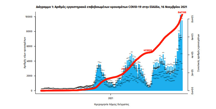 Τα στοιχεία που παρουσιάζονται αφορούν περιστατικά από την επιδημιολογική επιτήρηση της νόσου από τον νέο κοροναϊό (COVID19), με βάση τα δεδομένα που έχουν δηλωθεί στον ΕΟΔΥ και καταγραφεί μέχρι τις 16 Νοεμβρίου 2021 (ώρα 15:00).