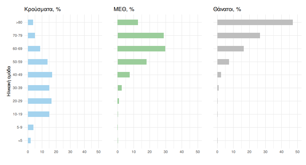Η διάμεση ηλικία των κρουσμάτων είναι 38 έτη (εύρος 0.2 έως 106 έτη), ενώ η διάμεση ηλικία των θανόντων είναι 78 έτη (εύρος 0.2 έως 106 έτη).