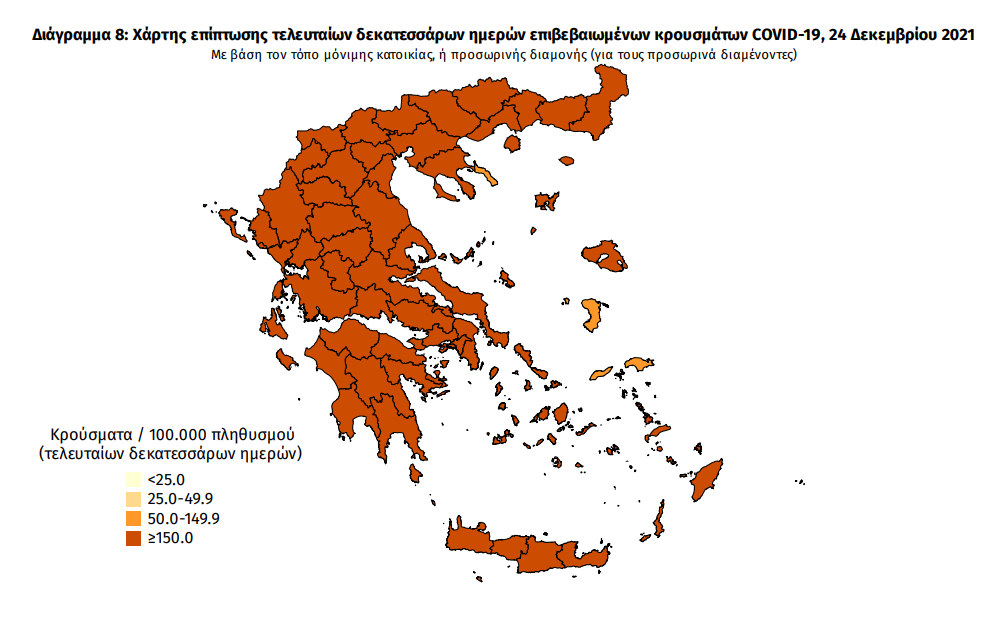 Με βάση τα επιβεβαιωμένα κρούσματα των τελευταίων 7 ημερών, 206 θεωρούνται σχετιζόμενα με ταξίδι από το εξωτερικό και 2.591 είναι σχετιζόμενα με ήδη γνωστό κρούσμα.