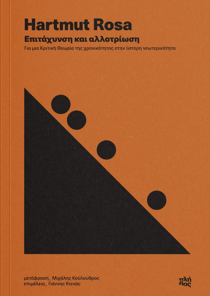 Κρατάμε ήδη στα χέρια μας τον δεύτερο τίτλο που κυκλοφόρησαν οι νέες εκδόσεις «Πλήθος»: «Επιτάχυνση και αλλοτρίωση» του γερμανού κοινωνιολόγου Χάρτμουτ Ρόζα (σε μετάφραση Μιχάλη Κούλουθρου). Και οι εντυπώσεις αφορούν τόσο την αισθητική πρόταση όσο και το περιεχόμενο. Ο λιτός σχεδιασμός του εξωφύλλου από τον Βασίλη Παπαγεωργίου και η συνολική επιμέλεια συνδέονται με μια διαδεδομένη πλέον αίσθηση ότι μπορούμε να περιμένουμε πολλά από τους «μικρούς» του χώρου. Αίσθηση που αφορά και τους ίδιους τους τίτλους, καθώς το «Πλήθος» επιδεικνύει μια τόλμη προτείνοντας περισσότερο «σύνθετους» απ’ ότι θα περίμενε πιθανότατα κάποιος σε ένα εκδοτικό άνοιγμα.