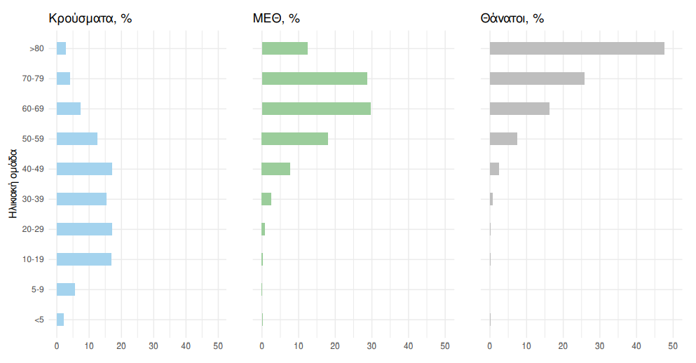 Η διάμεση ηλικία των κρουσμάτων είναι 35 έτη (εύρος 0.2 έως 106 έτη), ενώ η διάμεση ηλικία των θανόντων είναι 78 έτη (εύρος 0.2 έως 106 έτη).