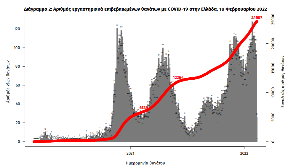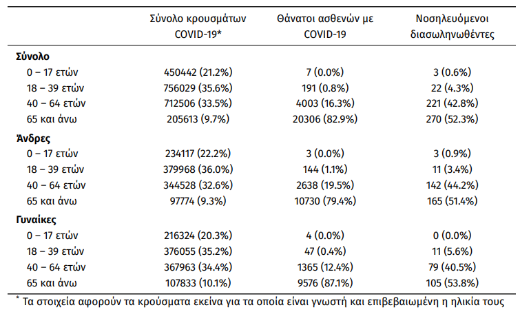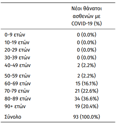Οι νέοι θάνατοι ασθενών με COVID-19 είναι 93, ενώ από την έναρξη της επιδημίας έχουν καταγραφεί συνολικά 24.507 θάνατοι. Το 95.1% είχε υποκείμενο νόσημα ή/και ηλικία 70 ετών και άνω.