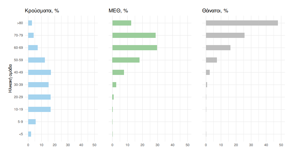 Η διάμεση ηλικία των κρουσμάτων είναι 35 έτη (εύρος 0.2 έως 106 έτη), ενώ η διάμεση ηλικία των θανόντων είναι 79 έτη (εύρος 0.2 έως 106 έτη).