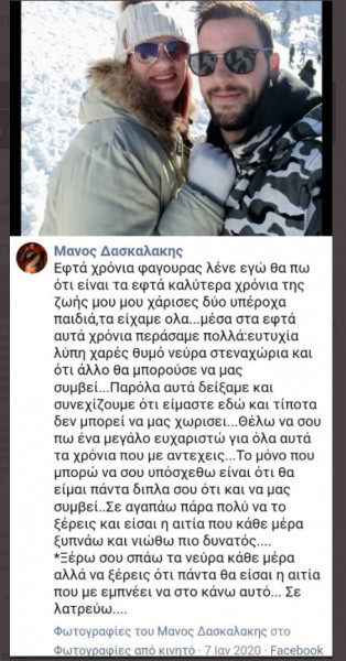 Ο πατέρας των παιδιών Μάνος Δασκαλάκης εκφράζει την απεριόριστη αγάπη του στο πρόσωπο της Ρούλας Πισπιρίγκου και εκείνη με την σειρά της ανταποδίδει.