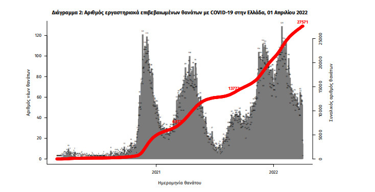 Οι νέοι θάνατοι ασθενών με COVID-19 είναι 60, ενώ από την έναρξη της επιδημίας έχουν καταγραφεί συνολικά 27.571 θάνατοι.