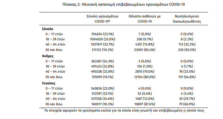 Το 95.3% είχε υποκείμενο νόσημα ή/και ηλικία 70 ετών και άνω.