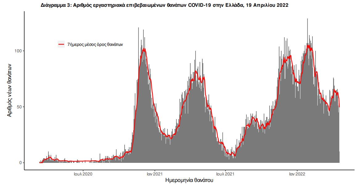 Οι νέοι θάνατοι ασθενών με COVID-19 είναι 46, ενώ από την έναρξη της επιδημίας έχουν καταγραφεί συνολικά 28.701 θάνατοι. Το 95.5% είχε υποκείμενο νόσημα ή/και ηλικία 70 ετών και άνω.