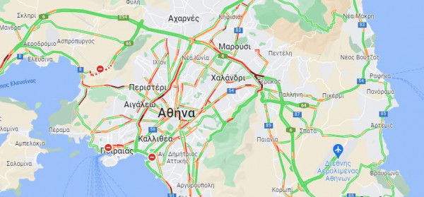 Οι μεγαλύτερες καθυστερήσεις παρατηρούνται στις λεωφόρους Αθηνών και Αθηνών-Κορίνθου από το ύψος του Παλατιού Χαϊδαρίου προς τη λίμνη Κουμουνδούρου και εν συνεχεία από την Ελευσίνα προς τη Βλυχάδα, λόγω τροχαίου.