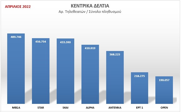 513.226 τηλεθεατές, κατά μέσο όρο, παρακολούθησαν το δελτίο του MEGA το πρώτο τετράμηνο του 2022.