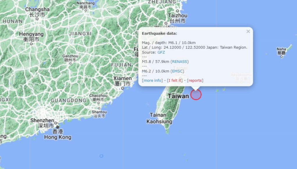 Η Ταϊβάν βρίσκεται κοντά στη συμβολή δύο τεκτονικών πλακών και είναι επιρρεπής σε σεισμούς.