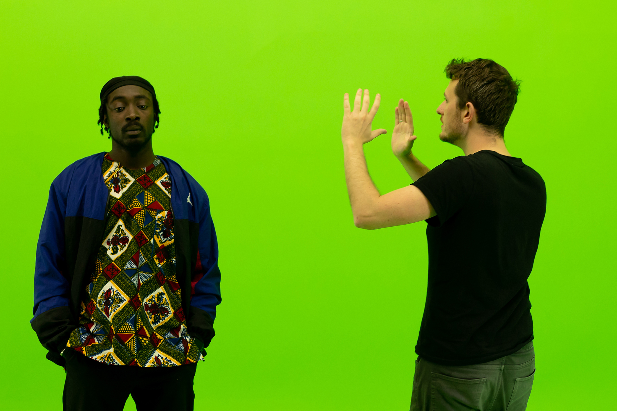 Η θεατρική δράση διχοτομείται μεταξύ του τι βγαίνει στον αέρα και τι όχι. Σήμερα ο δημόσιος λόγος χαρακτηρίζεται από αυτές τις δύο πραγματικότητες και πρίσματα. Το στημένο και το πραγματικό, το εικονικό και το φυσικό, το δημόσιο και το ιδιωτικό. Στην παράσταση ο θεατής έχει απόλυτη πρόσβαση στο ιδιωτικό και στο OFF CAMERA αλλά ταυτόχρονα βλέπει πως κατασκευάζεται μια δημόσια εικόνα και μια εικονική πραγματικότητα – το Green Screen είναι ένα πολύ καθαρό εργαλείο για αυτόν τον σκοπό και λειτουργεί ως ‘επιδιορθωτικός φακός’ στην πολιτική πραγματικότητα, ωραιοποιεί τα τέρατα, κανονικοποιεί την σκληρότητα και κατευθύνει το συναίσθημα. Έτσι ο θεατής έχει το προνόμιο να δει όλα τα στάδια της κατασκευής όπως και τα επίπεδα της εξουσίας. Υπάρχουν οι απλοί υπάλληλοι του καναλιού, έπειτα τα στελέχη και οι παρουσιαστές, η Floor Manager και από πάνω ο Πρωθυπουργός – όμως τα σκαλοπάτια της εξουσίας δεν σταματούν εκεί. Από πάνω είναι η διεύθυνση του καναλιού, οι επιχειρηματίες και οι παράγοντες που κατέχουν την πραγματική ανώτατη εξουσία σε αυτή την χώρα και επιλέγουν πρωθυπουργούς και τους χρησιμοποιούν για όσο είναι χρήσιμοι, όπως και ένα τηλεοπτικό πρόσωπο. Η πολιτική και τα μίντια έχουν γίνει σχεδόν ένα πια και αυτός είναι ο κόσμος που προσπαθεί να αναποδογυρίσει η Αντιγόνη αλλά και άλλοι χαρακτήρες. Έχουμε δημιουργήσει έναν χαρακτήρα ενός καλλιτέχνη, που τον παίζε ο Νέγρος του Μοριά, που έρχονται στο κανάλι με την επίφαση της στήριξης προς την νέα κυβέρνηση ώστε να της επιτεθούν εκ των έσω. Αλλά ας μη πούμε άλλα.