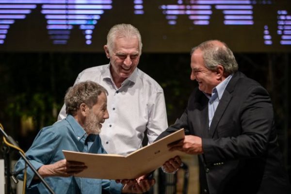 “Σταύρο Ξαρχάκο σε ευγνωμονούμε για όσα μας προσέφερες, για όσα μας προσφέρεις και για όσα θα μας προσφέρεις ακόμα. Στον ζοφερό ορίζοντα της εποχής μας με τις παγκόσμιες προκλήσεις του πολέμου, της κλιματικής αλλαγής, των κοινωνικών ανισοτήτων, έχουμε όλοι περισσότερο ανάγκη από ποτέ, να ακούσουμε «κάντε υπομονή κι ο ουρανός θα γίνει πιο γαλανός». Σταύρος Ξαρχάκος : Νυν και εσαεί.”