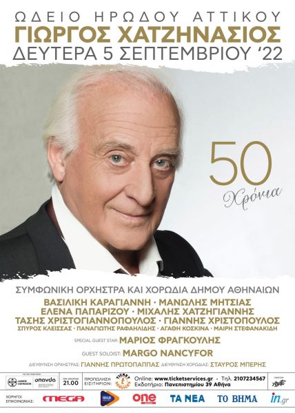 Ο Γιώργος Χατζηνάσιος από τη σκηνή του Ηρωδείου θα μας οδηγήσει στο πλούσιο και ενδιαφέρον μουσικό οδοιπορικό της επιτυχημένης πορείας του περνώντας από το κλασσικό στο σύγχρονο ρεπερτόριο και από τις αγαπημένες κλασσικές και κινηματογραφικές συνθέσεις του στα υπέροχα τραγούδια του.