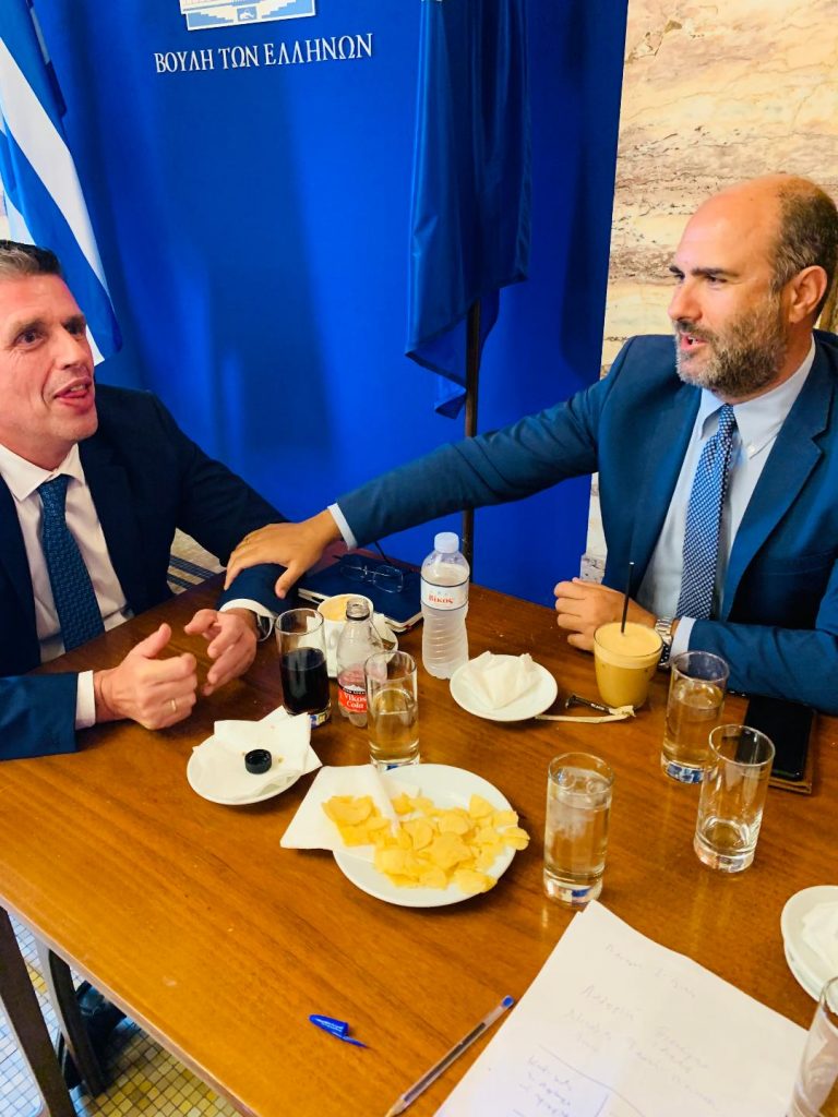Σε ένα από τα τραπέζι βρέθηκαν και συνομίλησαν «γαλάζιοι» βουλευτές. Συγκεκριμένα, ο Δημήτρης Καιρίδης που θα είναι εισηγητής για το καυτό θέμα, με τον Δημήτρη Μαρκόπουλο, ο οποίος θα συμμετέχει στην Εξεταστική Επιτροπή, συνομίλησαν για αρκετή ώρα.