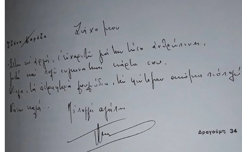 Tο χειρόγραφο σημείωμα της Τζένης Καρέζη