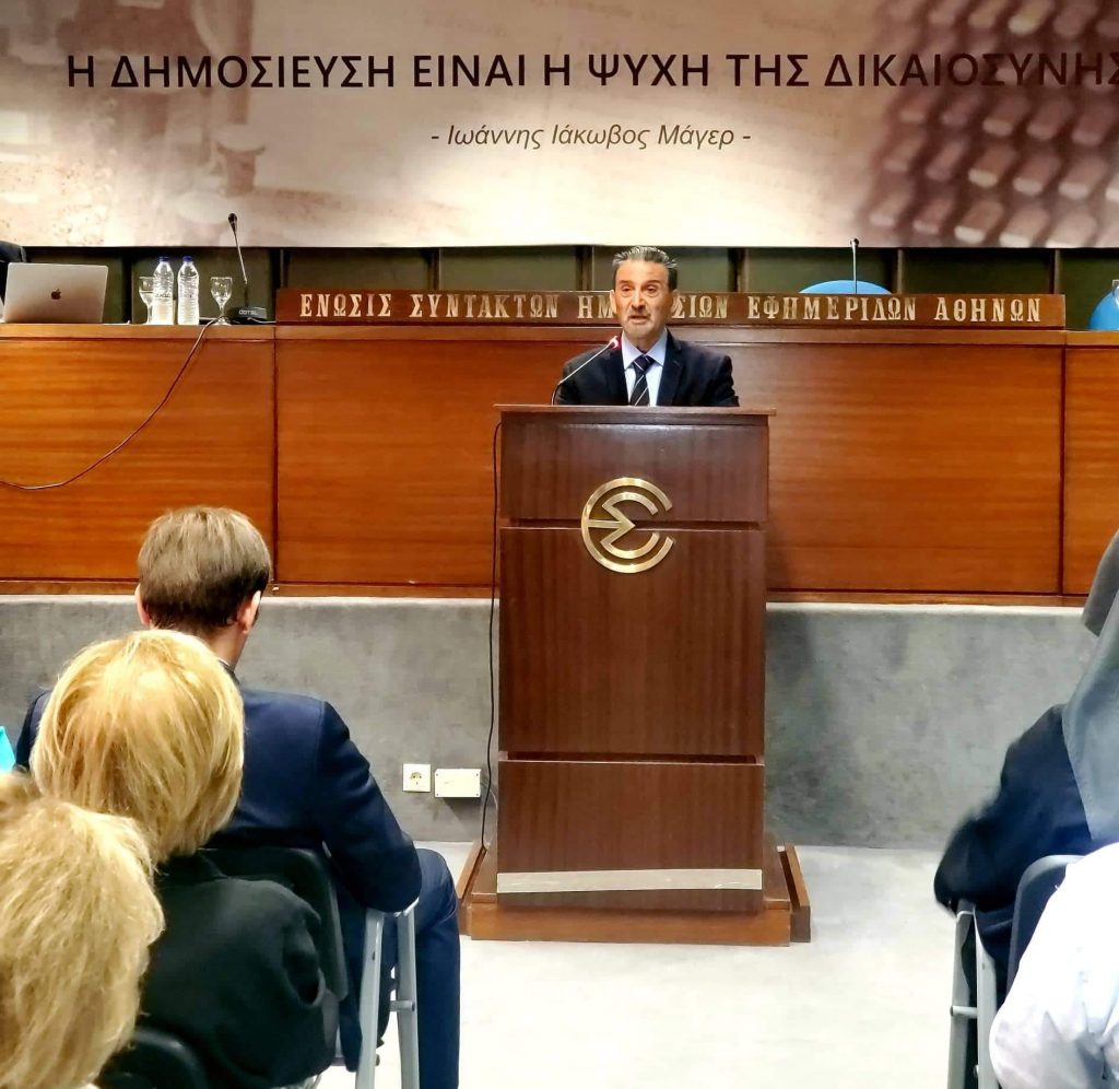 Στην εκδήλωση που έγινε στο κτίριο της ΕΣΗΕΑ παραβρέθηκαν, μεταξύ των άλλων, η υφυπουργός Μετανάστευσης και Ασύλου κυρία Σοφία