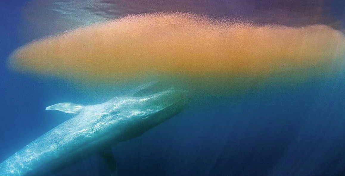 Γαλάζια φάλαινα επιτίθεται σε κοπάδι κριλ. Σε κάθε μπουκιά φτύνει το νερό και κρατά τα μικρά καρκινοειδή (Richard Herrmann)