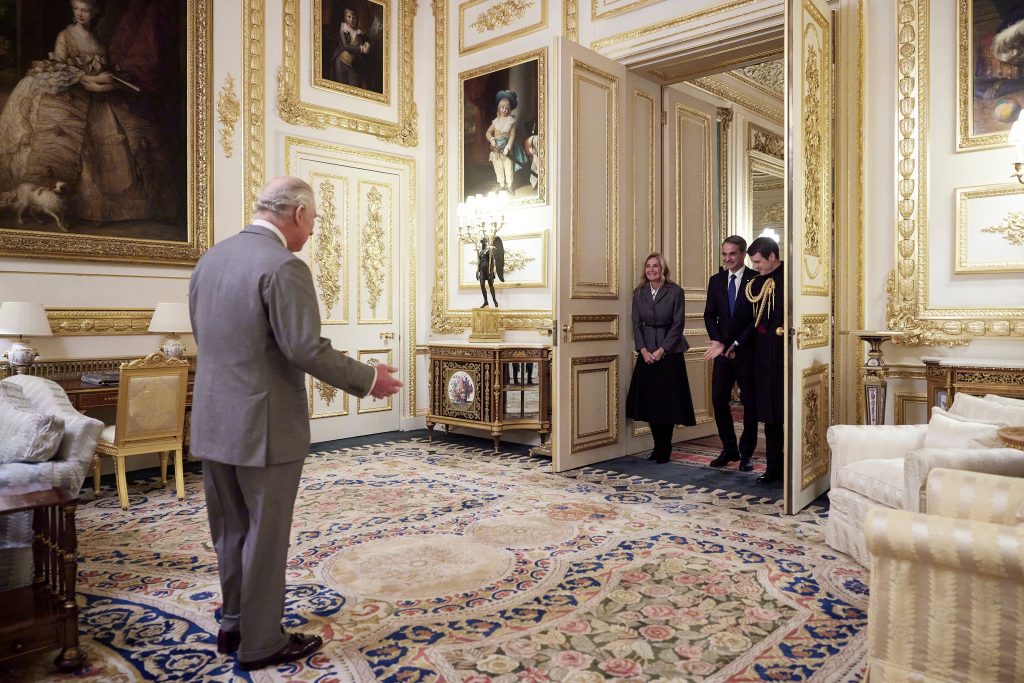 Με την κατ’ ιδίαν συνάντησή του με το βασιλιά Κάρολο Γ’ συνεχίστηκε η παρουσία του Έλληνα πρωθυπουργού Κυριάκου Μητσοτάκη στο Λονδίνο.