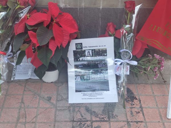 Στο μνημείου του αδικοχαμένου μαθητή άφησε συμβολικά ένα μπουκέτο ρόδια ο Γιώργος Θαλάσσης, γυμνασιάρχης Αλέξη Γρηγορόπουλου.