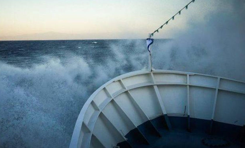 Το Superferry στο βίντεο που κάνει τον γύρο του διαδικτύου πλέει κόντρα στα 8 μποφόρ που πνέουν στη θαλάσσια περιοχή, συνεχίζοντας το ταξίδι του για την Άνδρο.