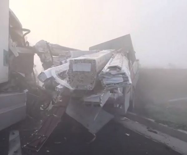 Η περιοχή στην οποία σημειώθηκε το ατύχημα, όπως φαίνεται από το βίντεο και τις φωτογραφίες, είχε καλυφθεί με ομίχλη με αποτέλεσμα κάποιοι από τους οδηγούς λόγω μειωμένης ορατότητας στο δρόμο να εμπλακούν στην καραμπόλα.