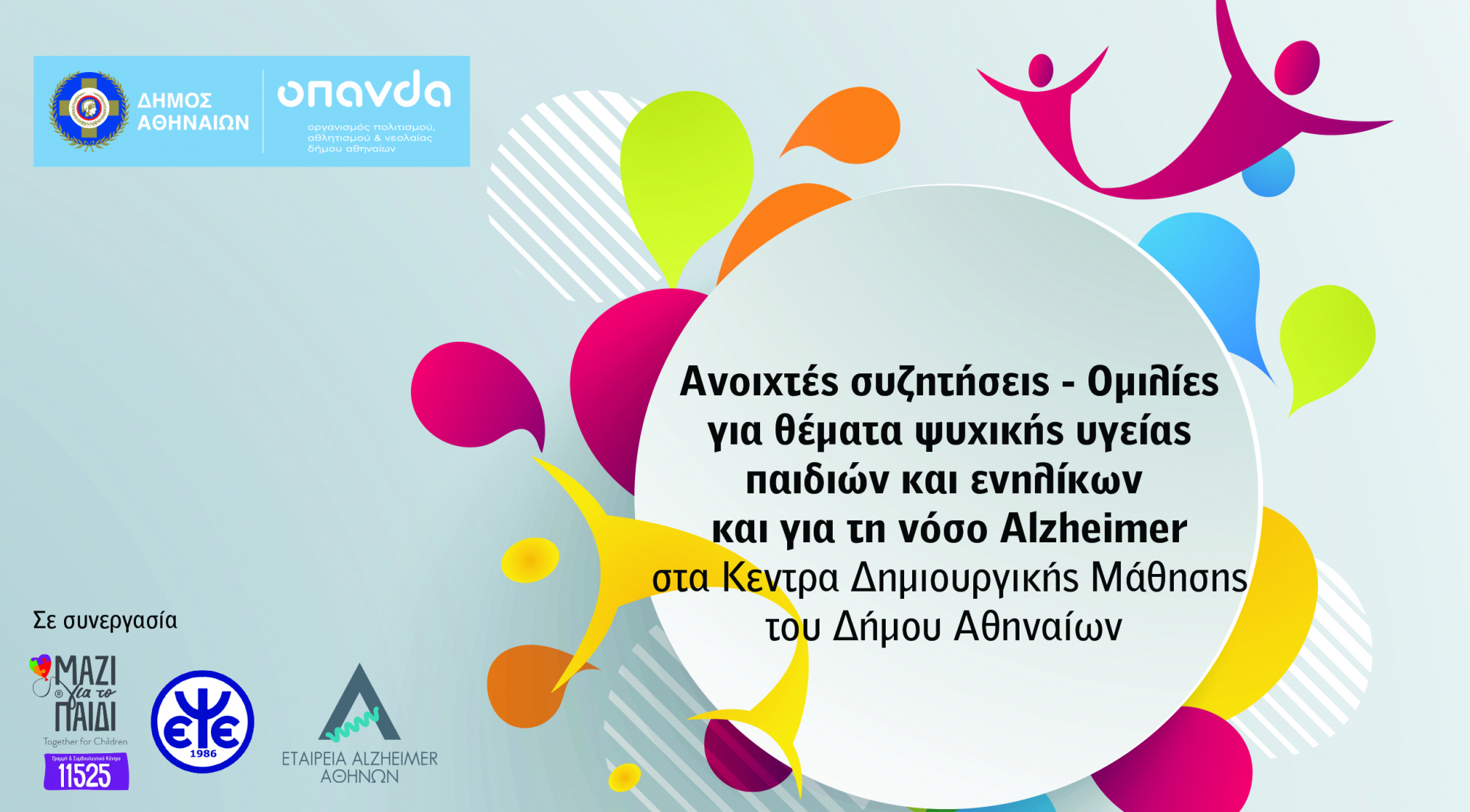 Συνεχίζεται έως τον Απρίλιο, ο κύκλος ομιλιών με δωρεάν συμμετοχή, που διεξάγει ο Δήμος Αθηναίων στα Κέντρα Δημιουργικής Μάθησης μέσω του Οργανισμού Πολιτισμού, Αθλητισμού και Νεολαίας του Δήμου Αθηναίων (ΟΠΑΝΔΑ), σε συνεργασία με επιστημονικά αναγνωρισμένους φορείς, στοχεύοντας στην ευαισθητοποίηση, την ενημέρωση και την υποστήριξη των δημοτών σε θέματα αγωγής και υγείας.