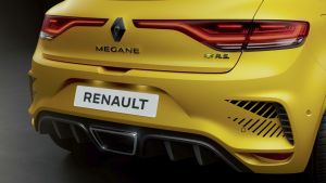 Το Megane R.S. Ultime ξεχωρίζει από την άκρως σπορ αισθητική του όπως τα χαρακτηριστικά σήματα της Renault Sport το διπλό διαμάντι, καθώς και συγκεκριμένα γραφικά εμπνευσμένα από το νέο λογότυπο της Renault. Επίσης ξεχωρίζουν οι λωρίδες στην οροφή και το καπό, τον πίσω προφυλακτήρα, τις πόρτες και τα φτερά. Αυτές είναι σε μαύρη ματ απόχρωση για να ταιριάζουν με τα τέσσερα διαθέσιμα χρώματα του αμαξώματος. Το αμάξωμα του Megane R.S. Ultime διαθέτει κατά 60χλστ. φαρδύτερα φτερά εμπρός και 45χλστ. πίσω, πλευρικές εισαγωγές αέρα, φωτιστικά σώματα τεχνολογίας R.S. Vision, κεντρική απόληξη εξάτμισης, κεραία σε μορφή πτερυγίου, πίσω σποϊλερ οροφής και διαχύτη.