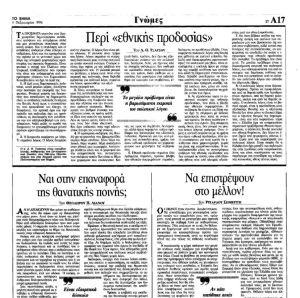 *Άρθρο του αειμνήστου Δημήτρη Θ. Τσάτσου (1933-2010), διακεκριμένου συνταγματολόγου και πανεπιστημιακού δασκάλου. Έφερε τον τίτλο Περί «εθνικής προδοσίας» και είχε δημοσιευτεί στην εφημερίδα «Το Βήμα» την Κυριακή 4 Φεβρουαρίου 1996, λίγες μόλις ημέρες μετά τα δραματικά γεγονότα της αποκαλούμενης κρίσης των Ιμίων και την απώλεια τριών στελεχών των ενόπλων δυνάμεων της χώρας μας.