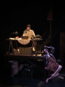Βασίλης Μαυρογεωργίου: «Στη συγκεκριμένη παράσταση υποδύομαι 22 διαφορετικούς ρόλους που εμπλέκονται στη ζωή του Μπιλ και της Λου επομένως μου είναι πολύ δύσκολο να επιλέξω μία μόνο σκηνή γιατί δεν θέλω να αφήσω κανέναν παραπονεμένο! Παρ’ όλα αυτά αν πρέπει οπωσδήποτε, θα έλεγα όλες τις σκηνές που υποδύομαι την εκκεντρική μητέρα της Λου, Τζόαν Τζάκι Γουότερλου! Κάθε φορά που φοράω αυτήν την τεράστια περούκα με ρόλεϊ, τα μεγάλα γυαλιά με έντονο σχήμα πεταλούδα και κρατάω αγκαλιά από τη μία ένα μπουκάλι μαγειρικό Μπράντυ και από την άλλη την πίπα για το τσιγάρο της, κρατιέμαι να μη με πιάσουν τα γέλια, ιδίως όταν το κοινό ξεκαρδίζεται στη θέα αυτής της γυναίκας η οποία ξέχασα να αναφέρω ότι κυκλοφορεί και με μία ταριχευμένη αλεπού στους ώμους της. Η Τζόαν Τζάκι Γουότερλου είναι γνωστή στα μαγαζιά της γειτονιάς διότι “δανείζεται” αρκετά πράγματα χωρίς την άδειά τους. Οι περιπέτειες της Λου με την μαμά της καταφέρνουν να είναι ξεκαρδιστικές όσο ξεκάθαρο κι αν είναι ότι δεν πρόκειται για ένα… ιδανικό πρότυπο μητέρας! Δεν σας λέω περισσότερα για να τα ανακαλύψετε μόνοι σας!»