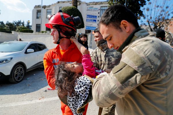 Ένα κοριτσάκι μόλις 18 μηνών ανασύρθηκε ζωντανό από τα ερείπια σπιτιού στην πόλη Αζάζ της βορειοδυτικής Συρίας, όμως αρκετά μέλη της οικογένειάς του σκοτώθηκαν εξαιτίας του ισχυρού σεισμού.