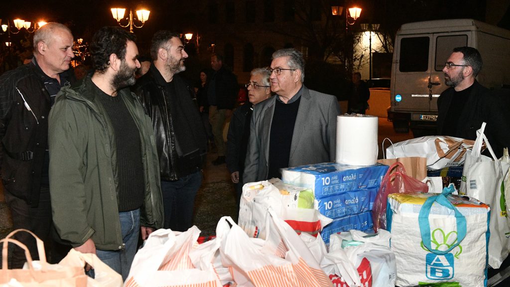 Επισκέφτηκε επίσης και το χώρο όπου τα συνδικάτα Αττικής συγκεντρώνουν βοήθεια για τους σεισμόπληκτους της Τουρκίας και της Συρίας.