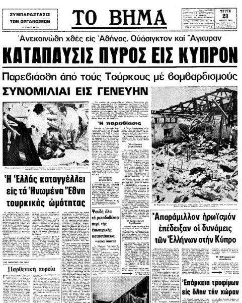 «ΤΟ ΒΗΜΑ», 23.7.1974, Ιστορικό Αρχείο «ΤΟ ΒΗΜΑ» & «ΤΑ ΝΕΑ»