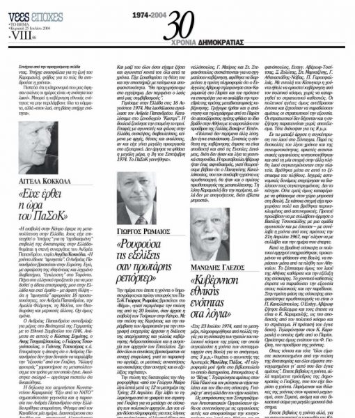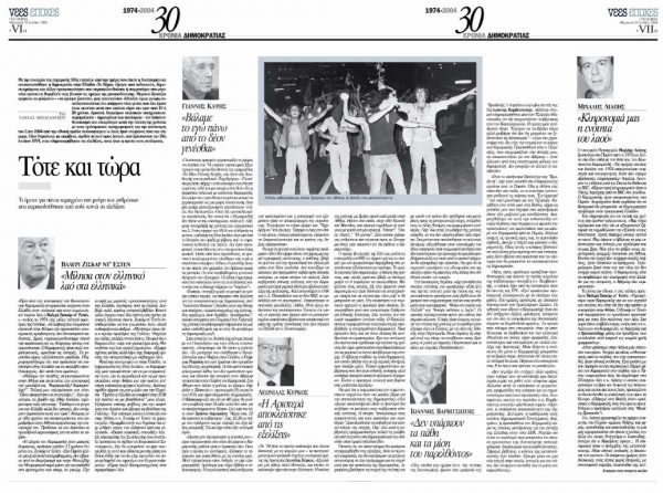 *Άρθρο που είχε δημοσιευτεί στην εφημερίδα «Το Βήμα της Κυριακής» στις 25 Ιουλίου 2004, με αφορμή τη συμπλήρωση 30 ετών από την πτώση του απριλιανού δικατορικού καθεστώτος και την αποκατάσταση της δημοκρατίας στη χώρα μας.