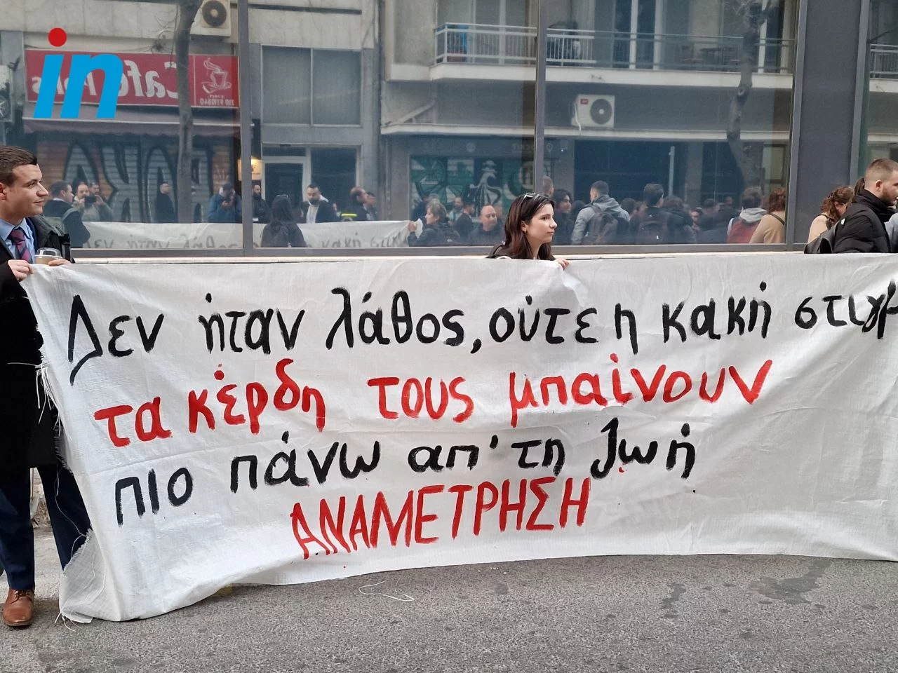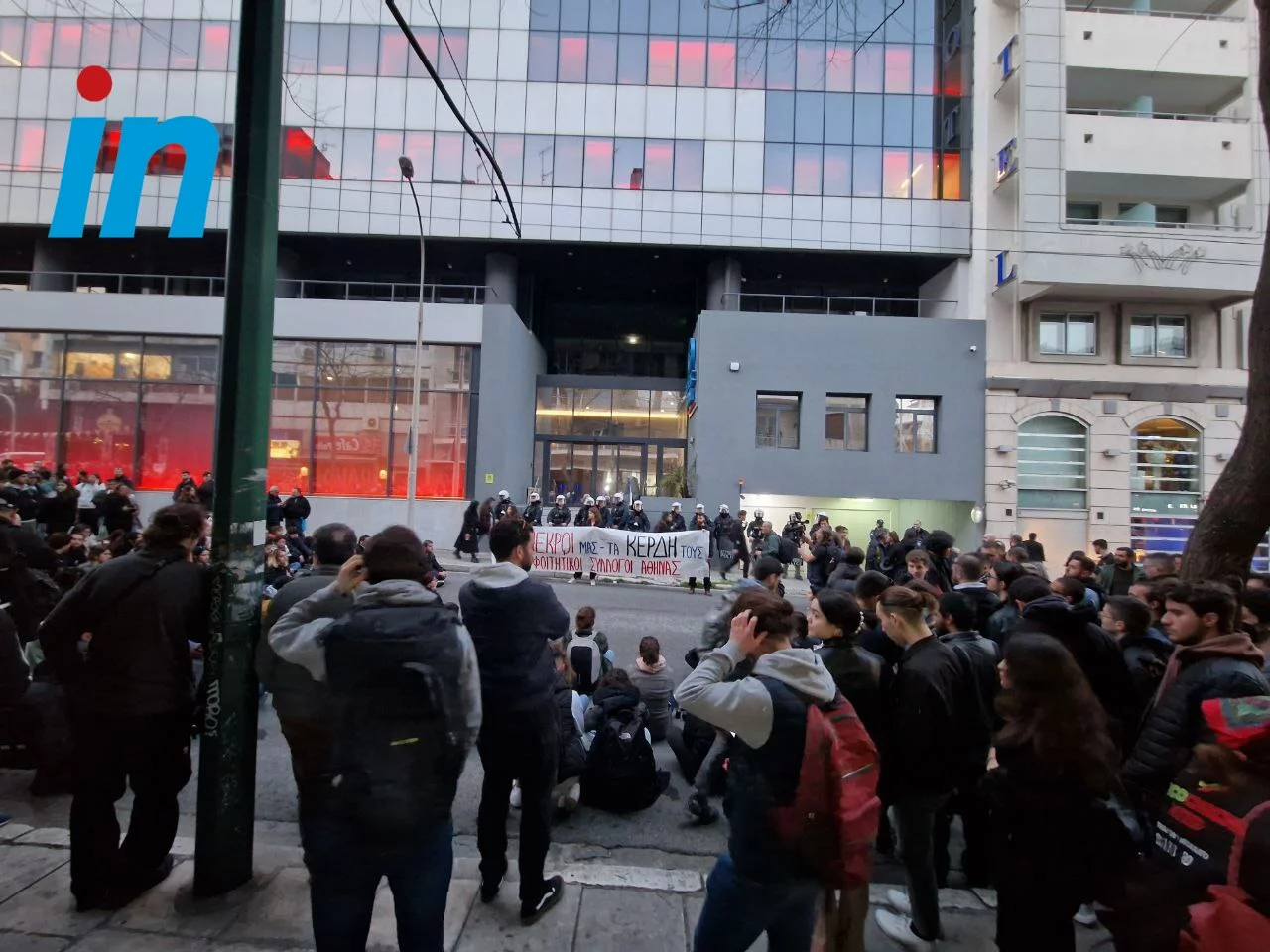 Ηδη έχει κλείσει ο δρόμος, έξω από τα γραφεία της εταιρείας, ενώ οι συγκεντρωμένοι κυρίως φοιτητές κρατούν πανό όπου γράφουν: «Δεν ήταν λάθος, ούτε η κακή στιγμή, τα κέρδη τους μπαίνουν πιο πάνω από τη ζωή»