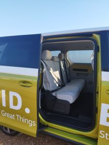 Στο πεδίο της δοκιμής μας ο ισχυρός ηλεκτροκινητήρας 150 kW (204 ίππους) με τα άφθονα αποθέματα της ροπής των 310 Nm. Σαφώς, οι πολλαπλές διαδρομές μας ήταν εξασφαλισμένες χάρη στην μεγάλη μπαταρία των 77 kWh (καθαρή ενεργειακή χωρητικότητα) που εξασφαλίζει μετά από μια πλήρη φόρτιση 400+ χιλιόμετρα αυτονομίας. Επίσης, η ευελιξία του οφείλετε τόσο στην άνετη και ψηλή θέση οδήγησης όσο και στο γεγονός ότι ο κύκλος στροφής είναι μικρός, μόλις 11,1 μέτρα. Όλα αυτά καθιστούν το ID. Buzz το ιδανικό όχημα και για το αστικό περιβάλλον.
