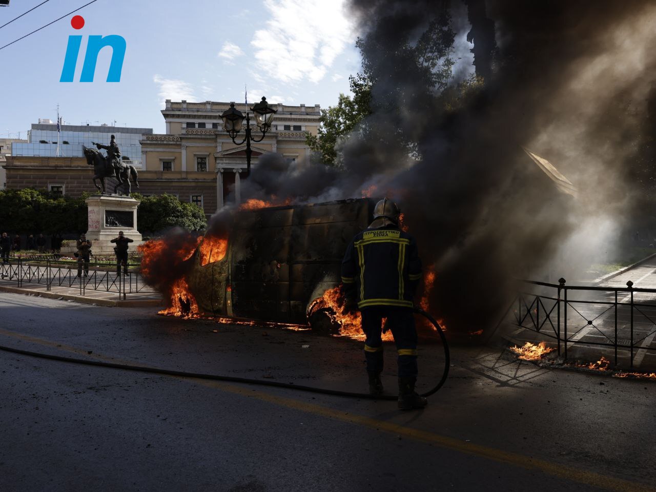 Τα επεισόδια ξεκίνησαν μπροστά στη Βουλή, όπου ομάδα αγνώστων πέταξε πέτρες και μολότοφ, με την Αστυνομία να απαντά άμεσα με ρίψη δακρυγόνων, οξύνοντας περαιτέρω τα πνεύματα.