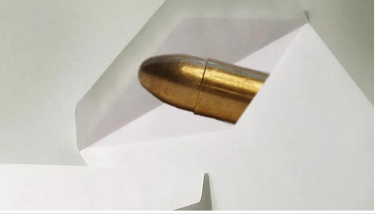 Στη συνέχεια, όταν η γυναίκα άνοιξε τον φάκελο διαπίστωσε ότι μέσα υπήρχε ένας άλλος, μικρότερος φάκελος, που περιείχε ένα φυσίγγιο των 45 χιλιοστών.