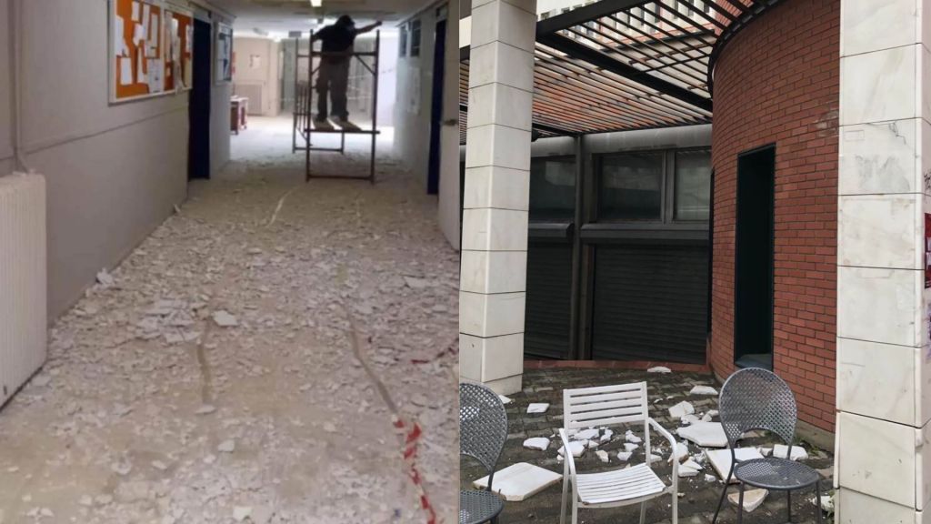 Τη μία καταγγελία των τελευταίων ημερών έκαναν φοιτητές του Αριστοτελείου Πανεπιστημίου Θεσσαλονίκης (ΑΠΘ), που αναφέρουν πως την Παρασκευή 17 Μαρτίου, κατέρρευσε κομμάτι από το υπόστεγο του κυλικείου της Κτηνιατρικής Σχολής.