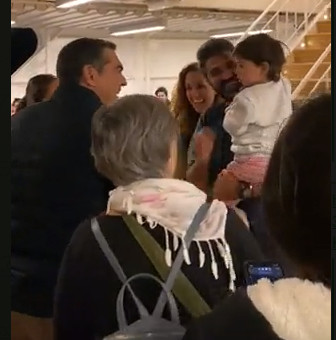 Όπως φαίνεται και στα βίντεο, ο Αλέξης Τσίπρας είναι ιδιαίτερα ευδιάθετος, κουβεντιάζει με την οικογένεια και παίζει με το χαριτωμένο μωρό της.