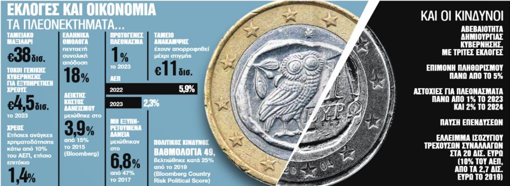 Από τη Moody’s ανέφεραν πρόσφατα ότι «περιμένουμε τώρα να δούμε πώς θα συνεχιστεί η παραγωγή και κυρίως η εφαρμογή πολιτικής» (Συνέδριο του Οικονομικού Επιμελητηρίου), ενώ από τη Fitch εκτιμούν ότι δεσμεύσεις που έχει αναλάβει η χώρα για την απορρόφηση κοινοτικών πόρων κυρίως από το Ταμείο Ανάκαμψης, αλλά και για τη συνέχιση της δημοσιονομικής προσαρμογής της οικονομίας δεν θα επιτρέψουν μεγάλες αποκλίσεις από τη σημερινή πολιτική. Υπάρχουν διαφορετικές εκτιμήσεις για τη φορολογική πολιτική, την κατεύθυνση των δαπανών, αλλά και αυτές θα πρέπει να κινηθούν μέσα στο ίδιο πλαίσιο.