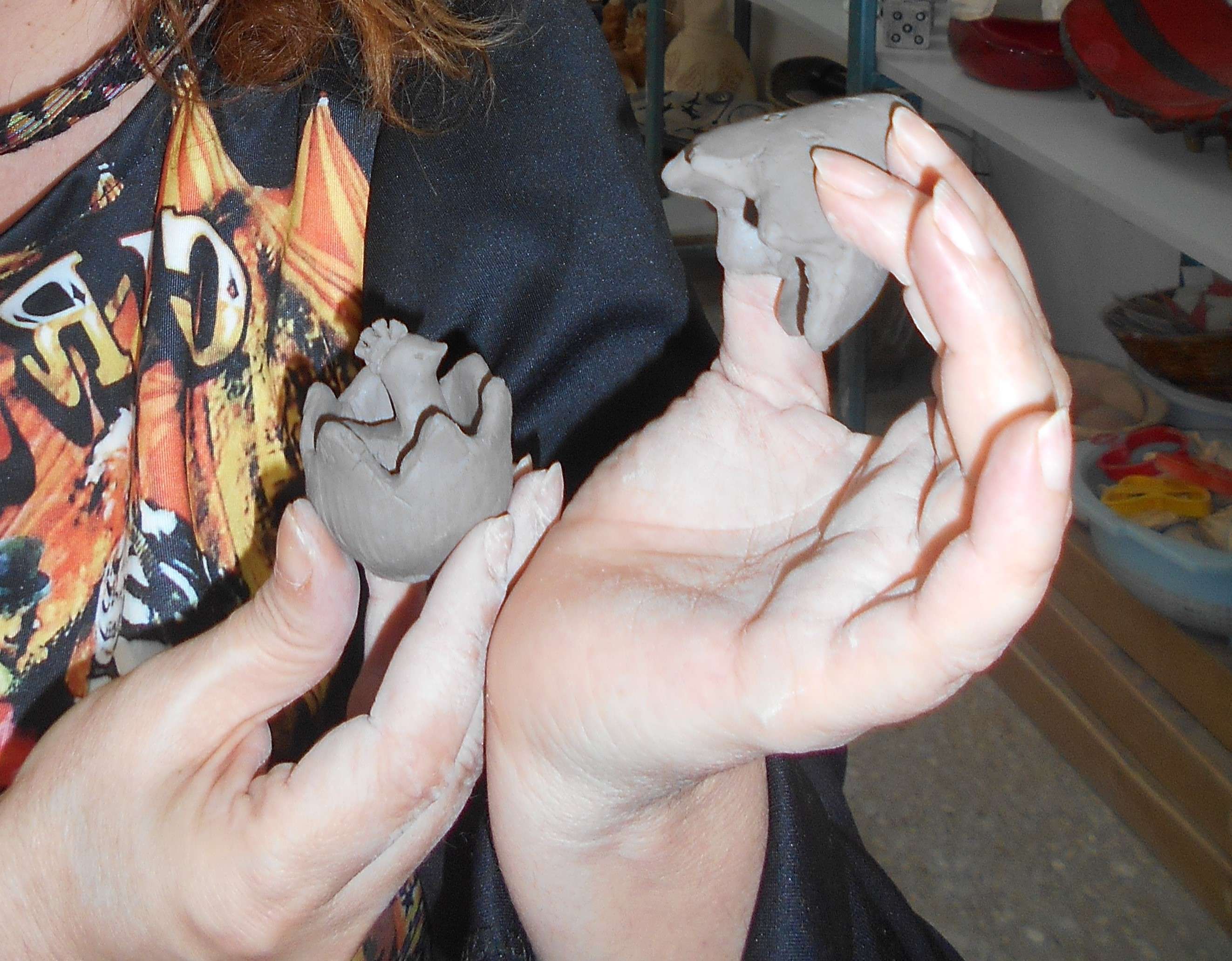 Ο κ. Αυγός καλωσορίζει τους συμμετέχοντες και τους πληροφορεί για τον πηλό και την τέχνη της Κεραμικής και στη συνέχεια πλάθουν τα δικά τους πήλινα αυγά.