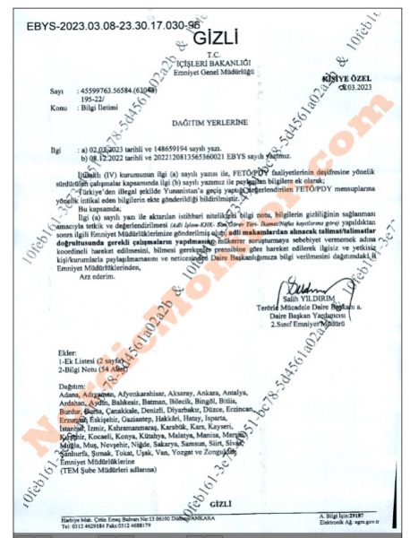 Αλλά σύμφωνα με μια επιστολή που υπογράφει ο αρχηγός της αστυνομίας Hüseyin Oğuz Namlı στο αστυνομικό τμήμα της Κωνσταντινούπολης στις 2 Φεβρουαρίου 2023, διεξήχθη έρευνα για 38 άτομα μόνο στην Κωνσταντινούπολη.