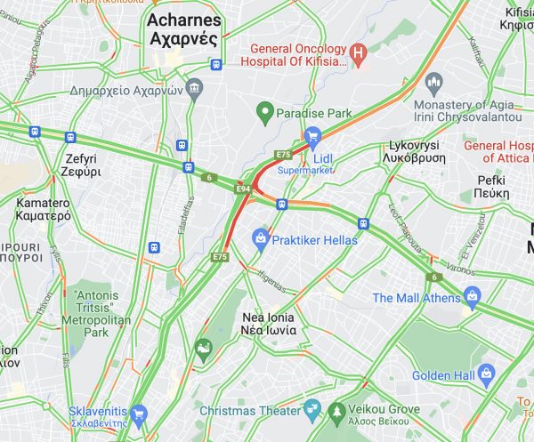 Τα οχήματα κινούνται με χαμηλές ταχύτητες στο συγκεκριμένο σημείο.